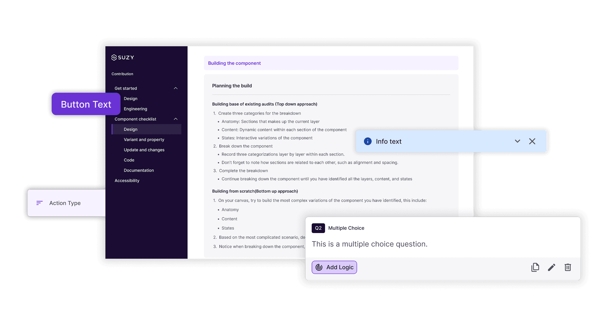 I established and managed a federated contribution model to build the Suzy global design system. By bridging core system development with active feature tracks, I ensured 100% library adoption from day one while accelerating team efficiency and fostering shared ownership.